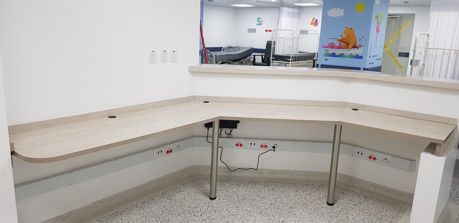 Instalación y adecuación de infraestructura eléctrica hospitalaria, incluyendo canalización embebida, cableado estructurado, sistemas de iluminación y tableros de distribución para zonas clínicas y administrativas. Trabajo realizado cumpliendo estándares técnicos y normativas de seguridad hospitalaria.