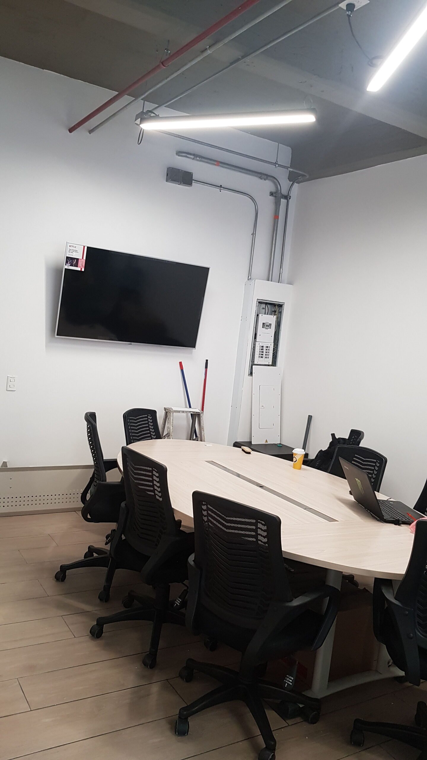 Proyecto de instalación eléctrica para instalaciones comerciales, con ejecución de canaletas, cableado y luminarias tipo panel en ambientes interiores. El enfoque principal fue la organización estética y funcional del cableado visible y oculto.