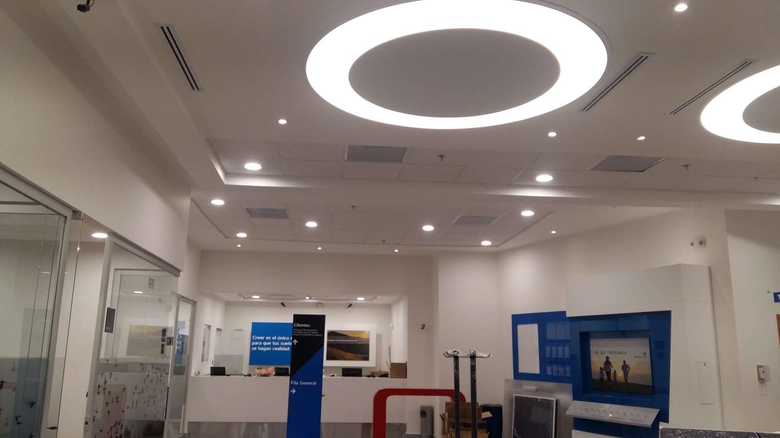 Intervención eléctrica en sede operativa de SuperGIROS, con instalación de luminarias LED empotradas, canalización superficial ordenada, adecuación de tomacorrientes y puntos de red. El trabajo se enfocó en oficinas de atención al cliente, priorizando estética y funcionalidad sin afectar la operación.