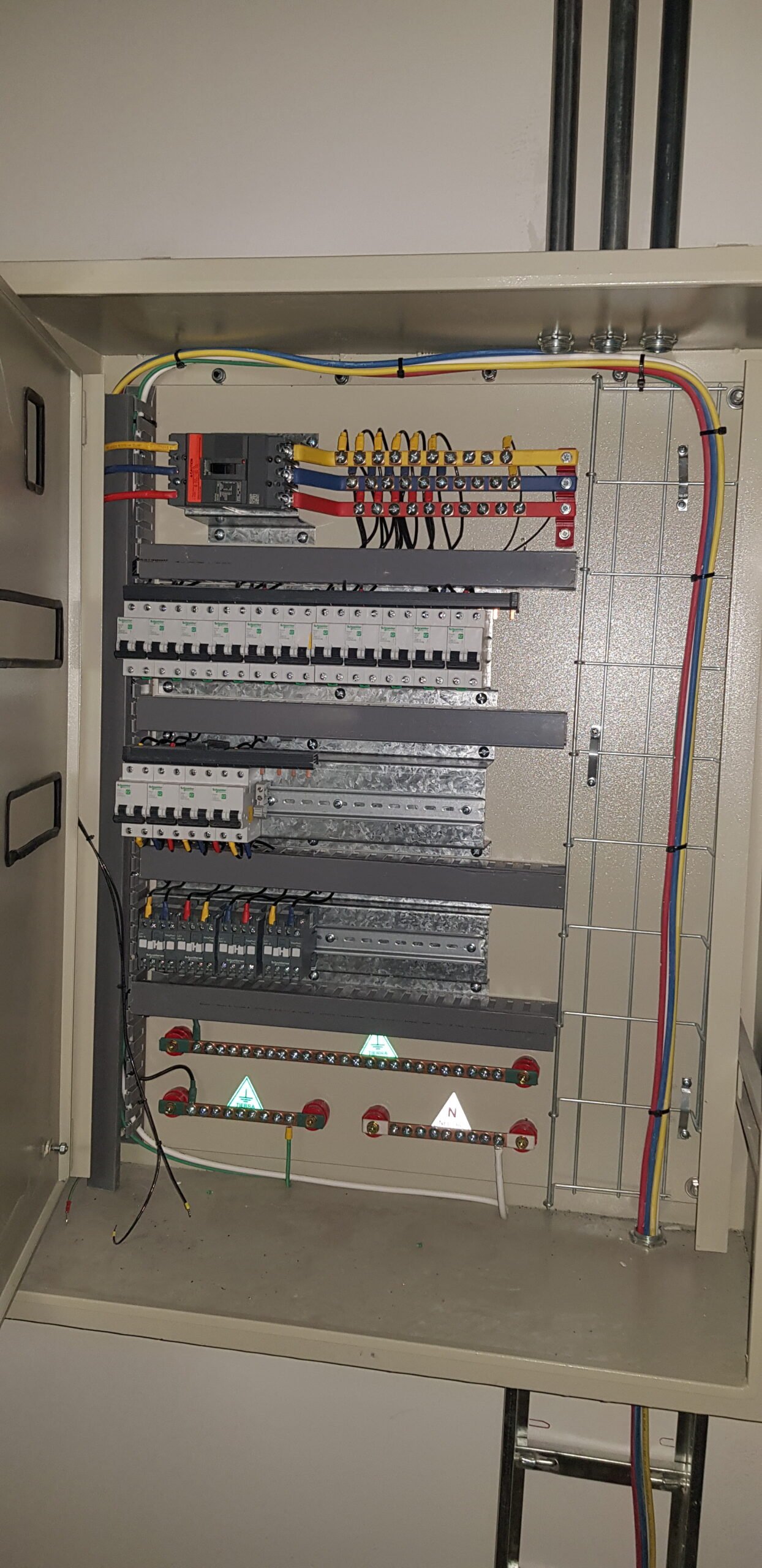 Proyecto de instalación eléctrica institucional en dependencias del Ejército Nacional de Colombia. Se implementaron soluciones de iluminación LED, canalizaciones aéreas organizadas y distribución de tomas de corriente en zonas administrativas, garantizando un entorno seguro, funcional y visualmente ordenado.