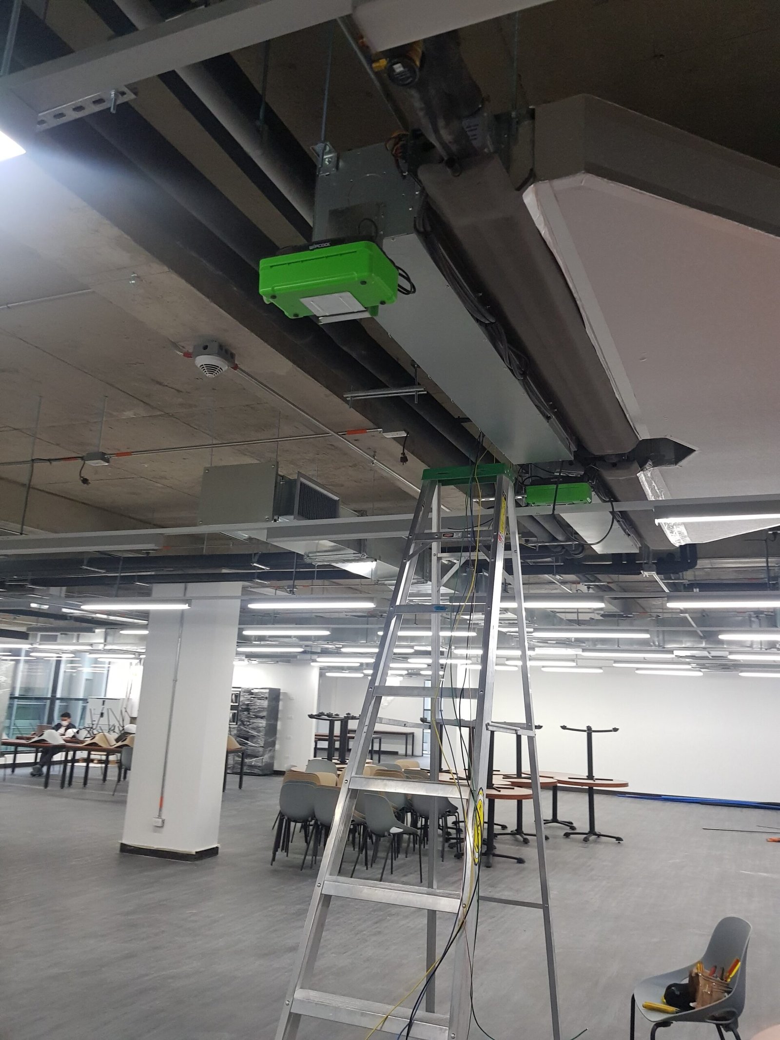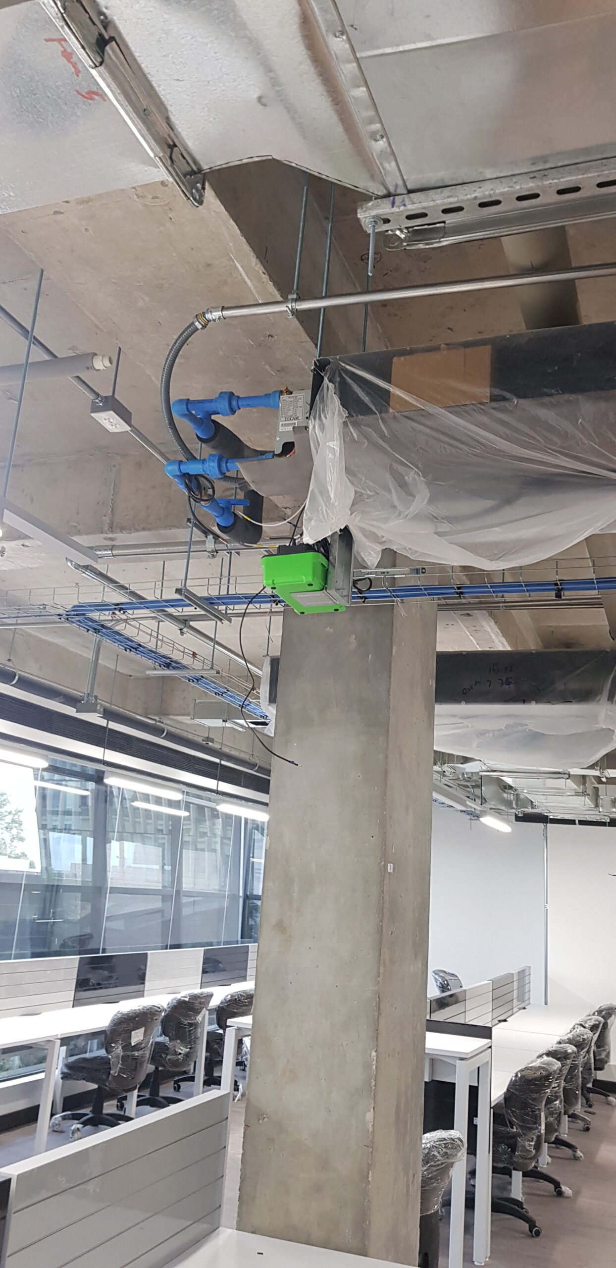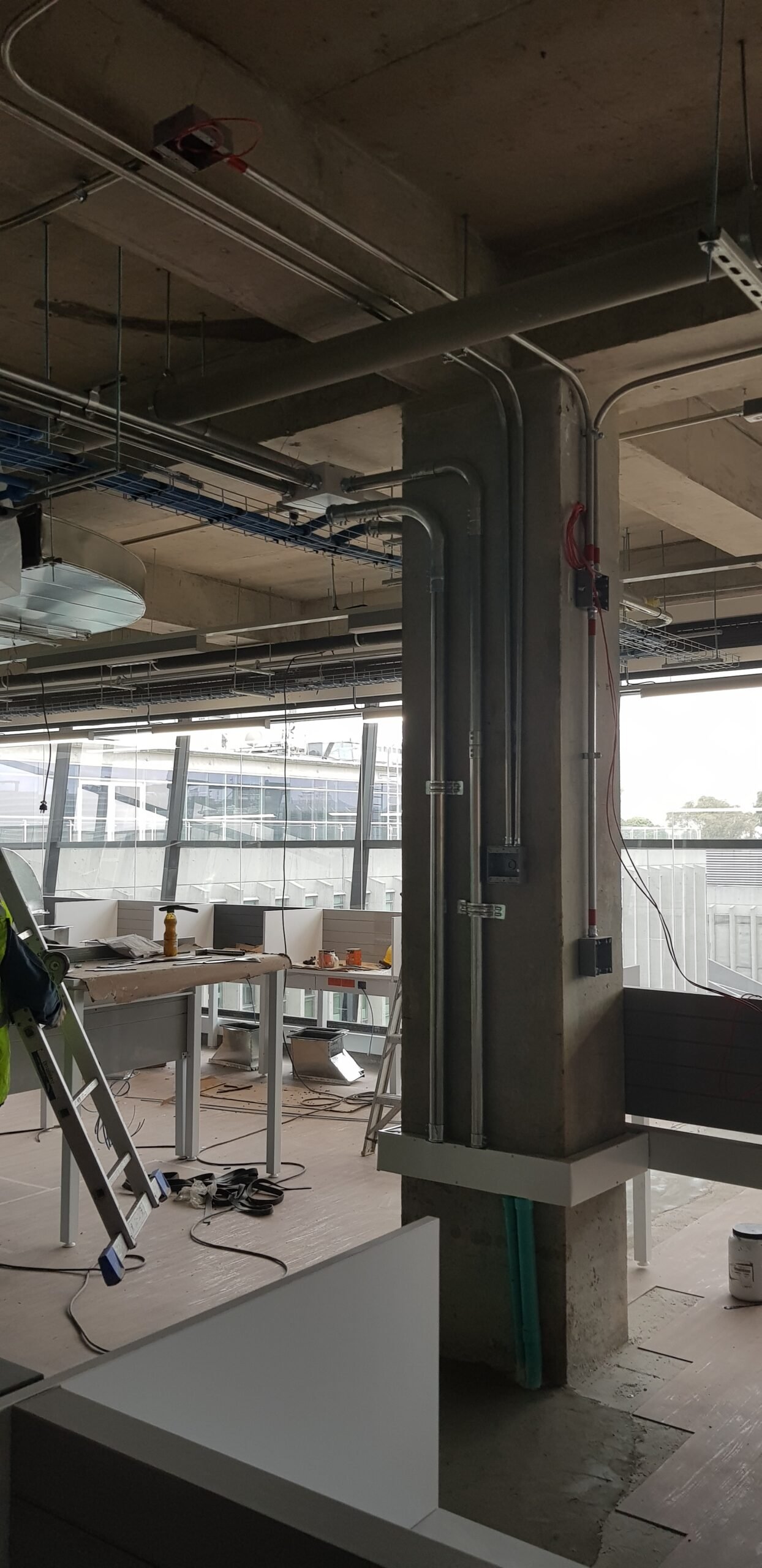 Adecuación eléctrica para espacios comerciales y de oficina de Applebta, con integración de luminarias suspendidas, cableado canalizado y acabados limpios. El proyecto incluyó distribución eléctrica ordenada y eficiente para puntos de trabajo modernos y equipos electrónicos